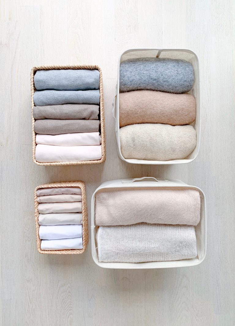 Start by collecting all your clothes (yours only) from all over the house. Coats from the entrance and maternity clothes from the storage room. It’s important to collect all the garments from every corner of the house, as the basic rule of the KonMari method is to tidy by category and not location.
